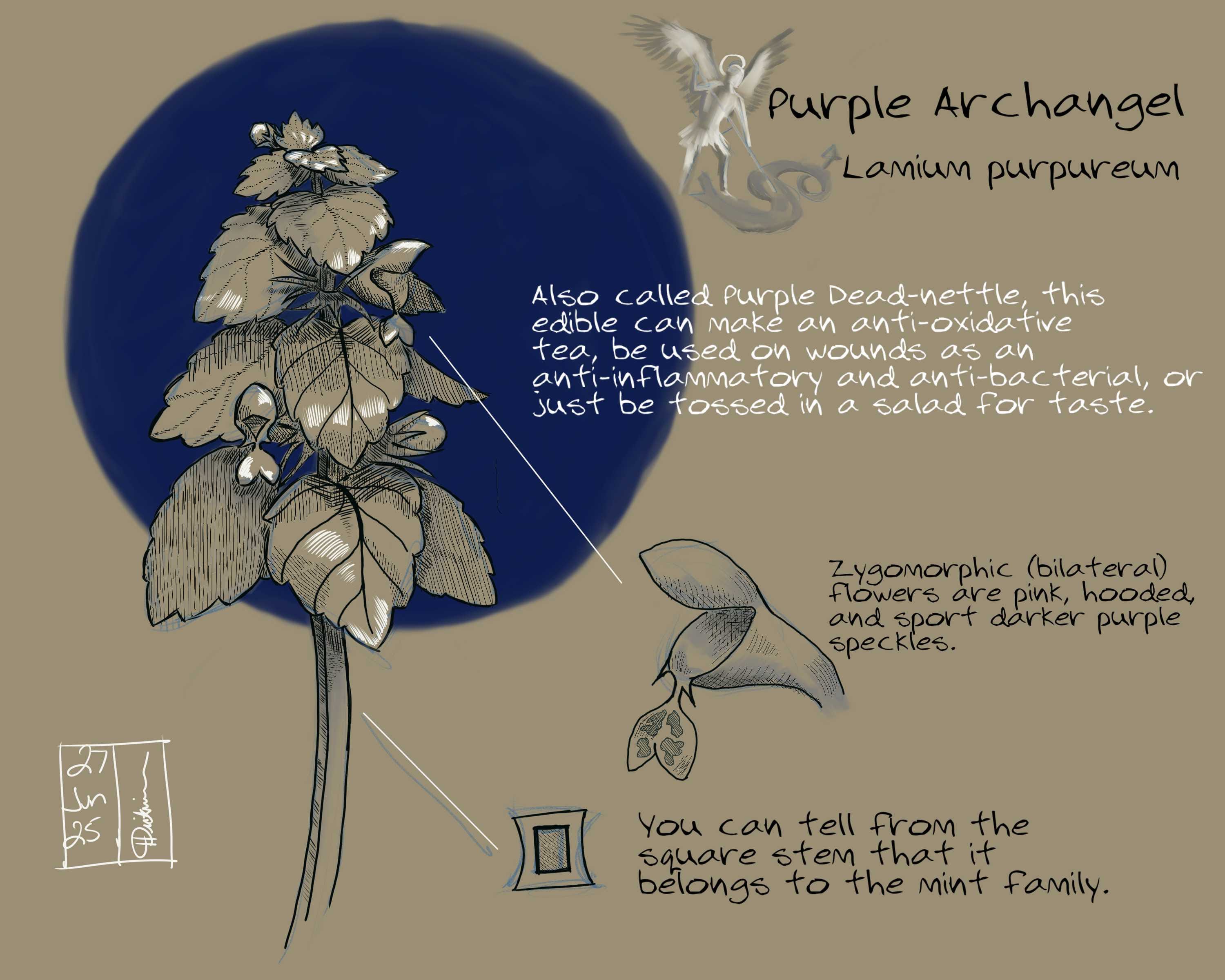 Sometimes this cool guy is also called “purple deadnettle,” but I like the name “purple archangel” better because its usually growing quite well here in Eastern Washington right around the Feast of the Apparition of St. Michael on May 8th. So you could say that we have the appearance of one earthly ‘archangel’ to commemorate the appearance of a real Archangel.