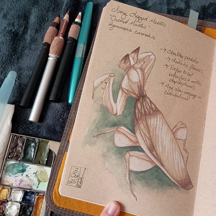 I’ve been doodling pretty regularly even though I haven’t had any formal projects on my radar, but the coolest thing of recent note has been teaching an introduction to nature journaling and scientific illustration at the school where I work. Watching these kids immerse themselves in nature and diagramming and learning how to apply art to other academic disciplines is increasing my excitement in the best ways for a discipline I’ve always been passionate about. In some aspects, it is simultaneously clarifying my call as both an artist and a teacher, as well as bringing a long-awaited fulfillment of some points on the vision board I put together four years ago.