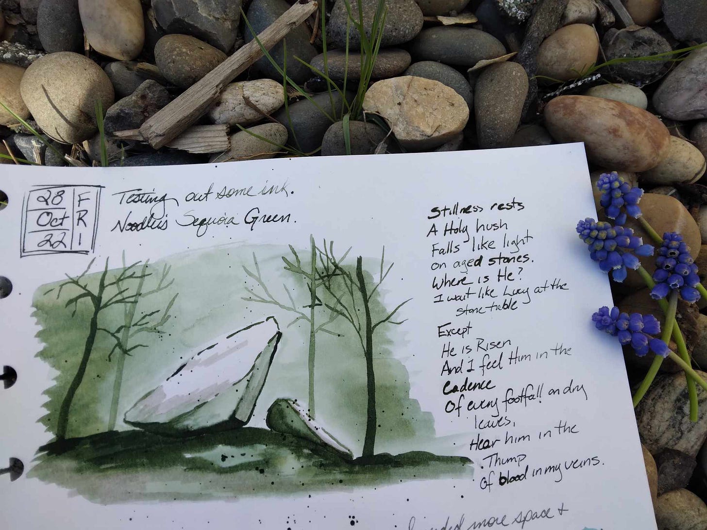 And I feel Him in the Cadence Of every footfall on dry leaves Hear Him in the Thump Of blood in my veins.