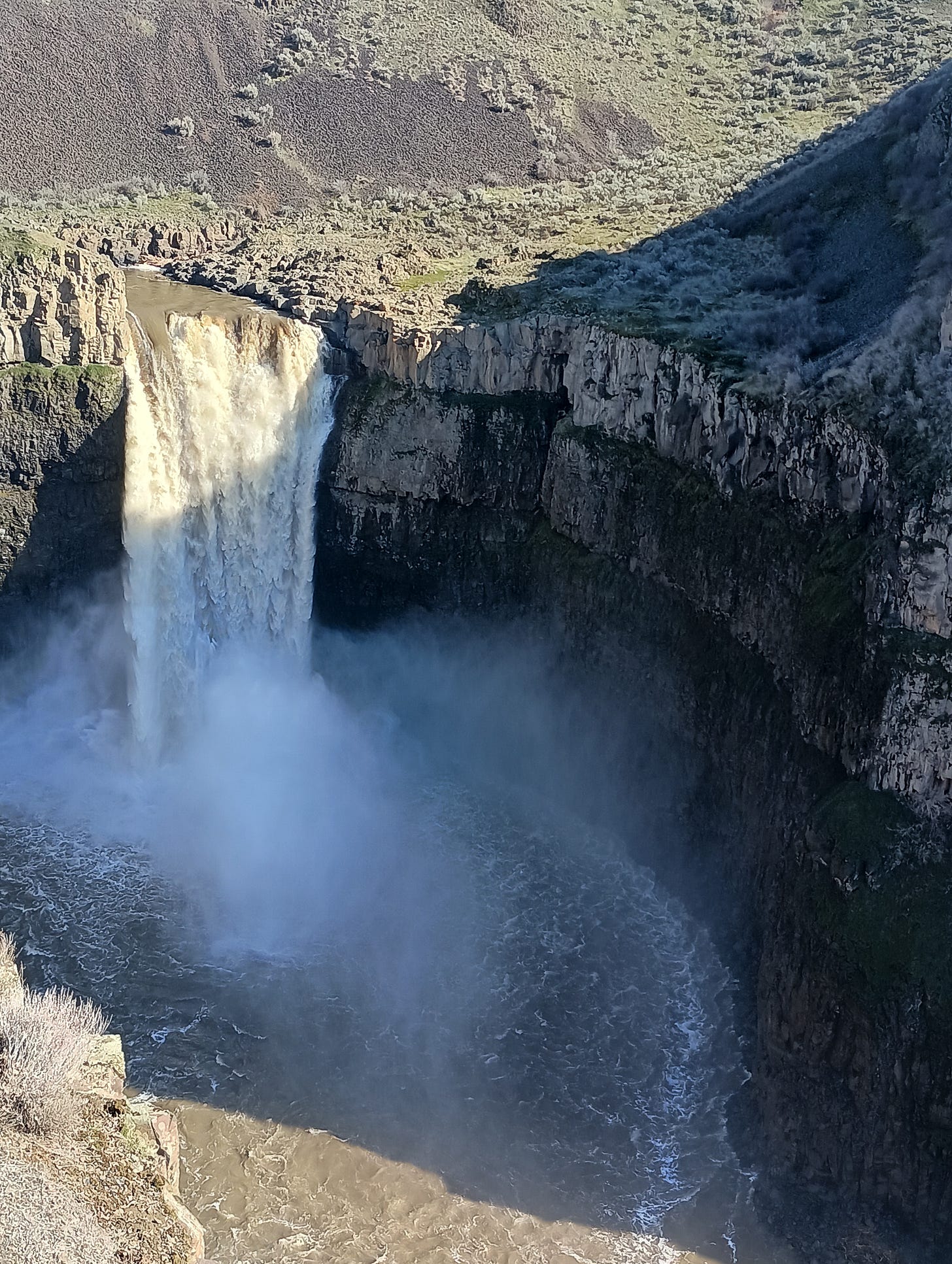 On this day, the canyon birds were all freewheeling on the thermals near the falls themselves and in front of the basalt cliffs. Oh, to be a bird. It must be better even than all the wonderful memories I have of riding motorcycle in the days before small children. There was nothing I loved better than the wind like Jesus' hand on my chest and the pull and rush of gravity as I swooped around corners. Birds get all that and they can dive, lift, or hover, completely at one with the air. I tried to get pictures, but they were too fast for me.