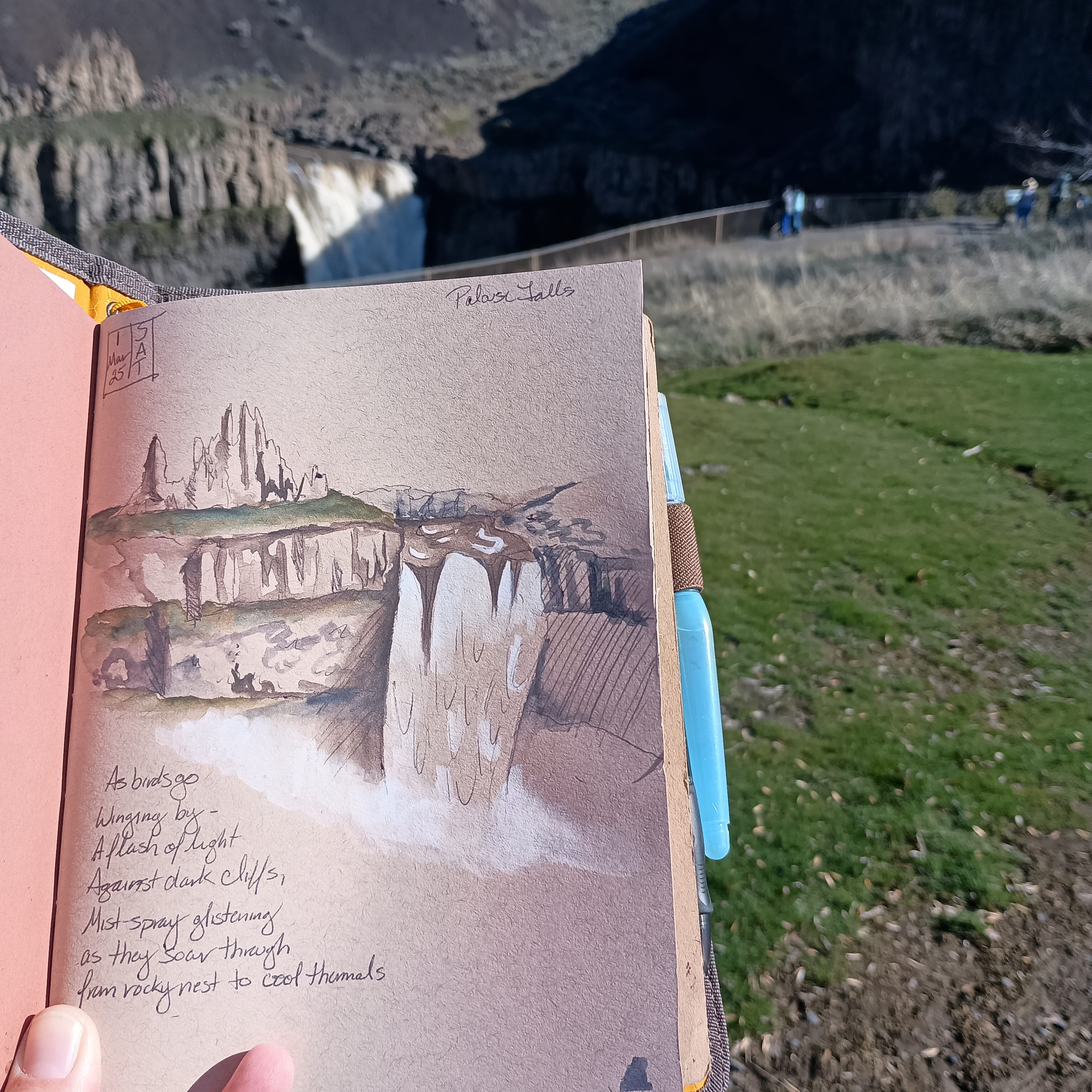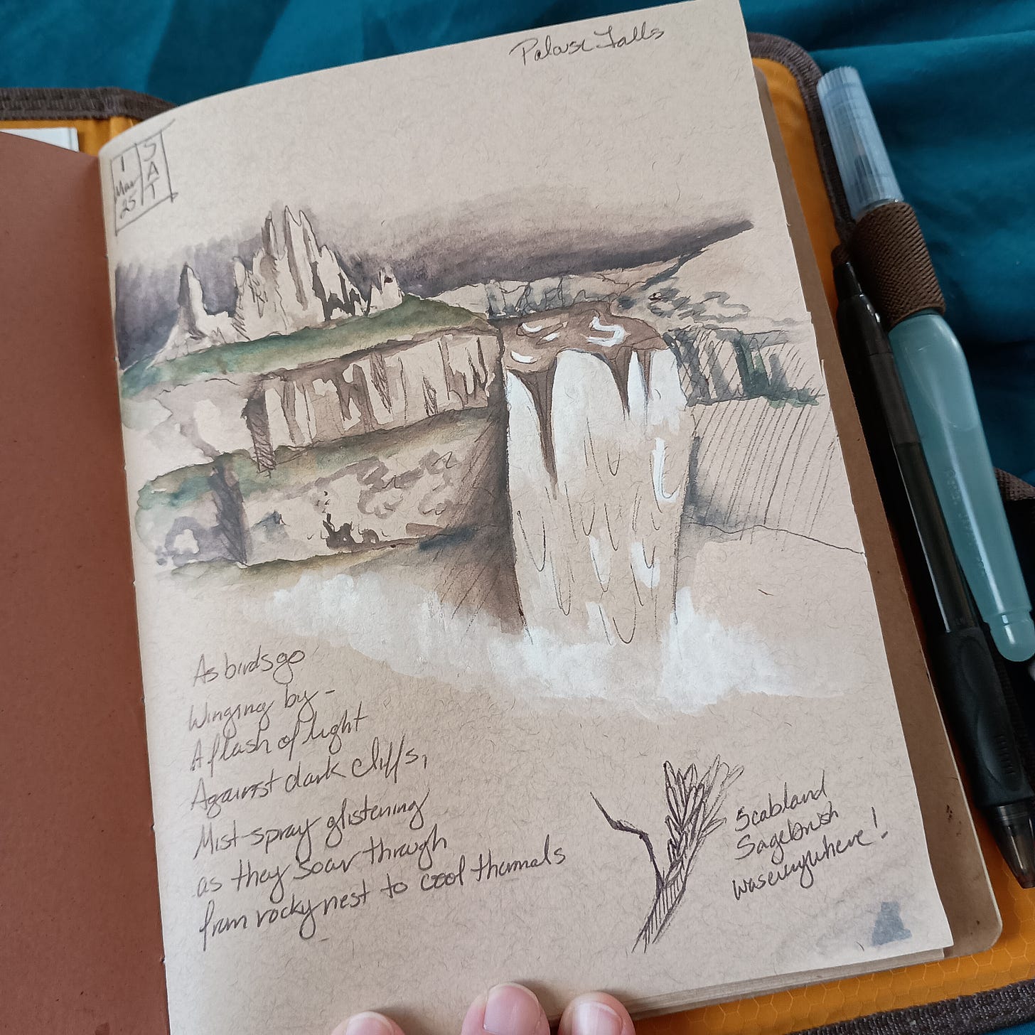 And then, after driving for what felt like most of the morning, we arrived, and I hurried to find a place to stand near the fenced edge and sketch.