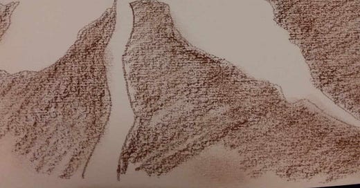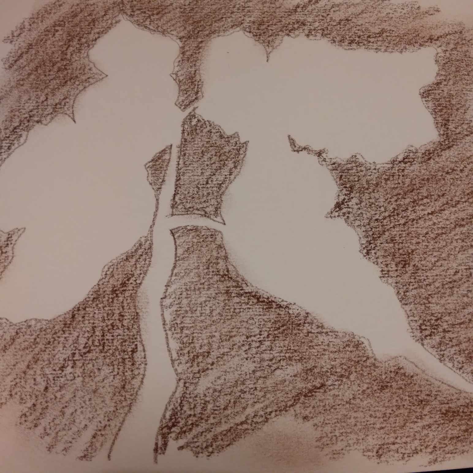 The idea with a negative space drawing, is you focus on drawing the outlines of all the negative space…. which, by the time you get a third or half-way through your drawing, you will begin to see your subject materialize on the page.