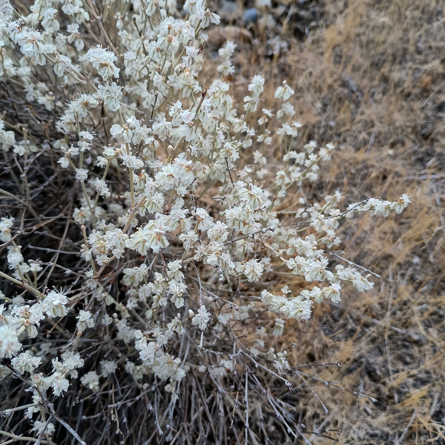 Snow buckwheat is a native plant to Eastern Washington, and I have probably encountered it many times in wilderness areas over the years and simply not noticed it. Much of the year, it looks, well, dead. Timing is everything, however, and this weekend the unusual, fluffy clumps of white resting on top of these “dead” bushes had me parking the car on the shoulder and diving into the ditch to investigate.